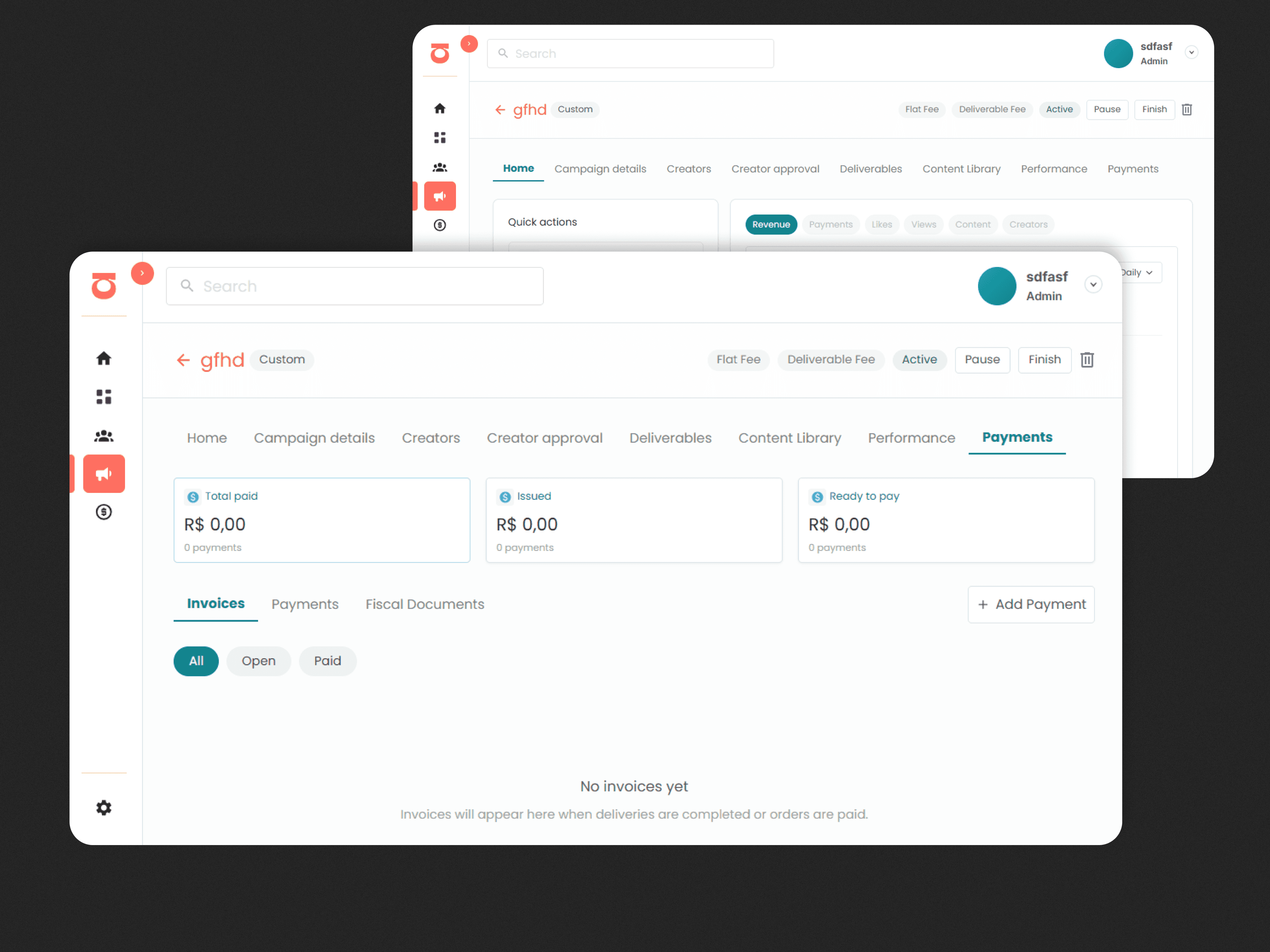 B2B SaaS platform for managing influencer campaigns end-to-end, from campaign creation and deal structuring to deliverable tracking and payments. Built from zero with a 2-person team.